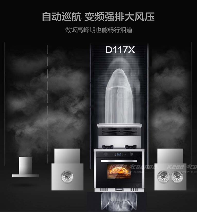 作為10余載高端廚電品牌,科恩電器一直引領(lǐng)著集成灶行業(yè)的發(fā)展,始終秉承著“為顧客提供更優(yōu)質(zhì)的廚電產(chǎn)品”。為時(shí)刻應(yīng)對(duì)消費(fèi)者需求,科恩電器不斷創(chuàng)新研發(fā)新品,積極布局集成灶產(chǎn)業(yè),以“蒸烤消一體、變頻大吸力、模塊化、冰箱門、大容量三抽”五大核心的產(chǎn)品矩陣優(yōu)勢(shì)引領(lǐng)廚電行業(yè)風(fēng)潮!科恩智能變頻大吸力集成灶D117X作為新一代廚電產(chǎn)品,憑借擁有≥720Pa大風(fēng)壓智能巡航系統(tǒng),高達(dá)21m3/min爆吸技術(shù),為用戶們有效解決了控?zé)煛⑴艧焼栴},滿足不同的烹飪方式和開放式廚房的無煙生態(tài)環(huán)境而大受歡迎!