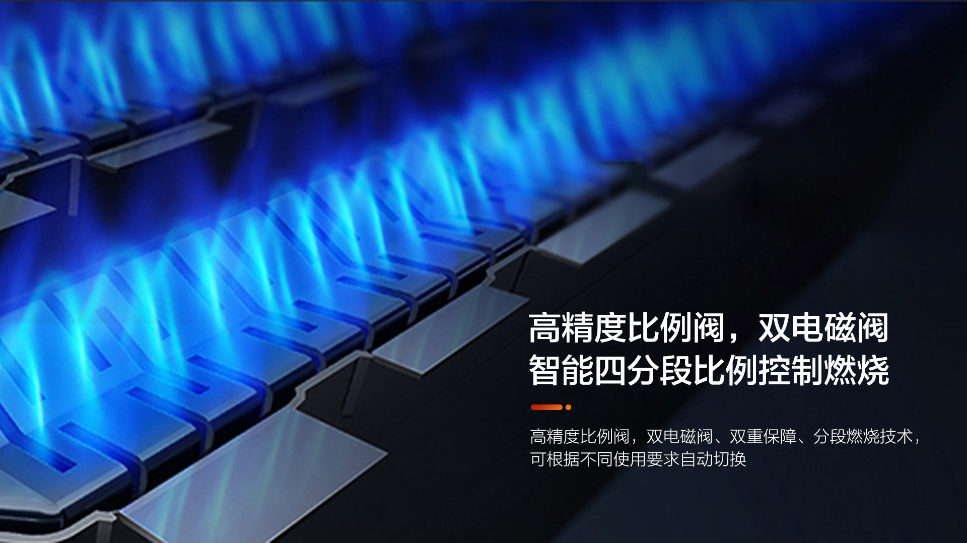高精度比例閥、雙電磁閥+智能四分段比例控制燃燒技術,可根據水流量和水溫精準匹配火力大小,出水恒溫,暢享舒適沐浴。