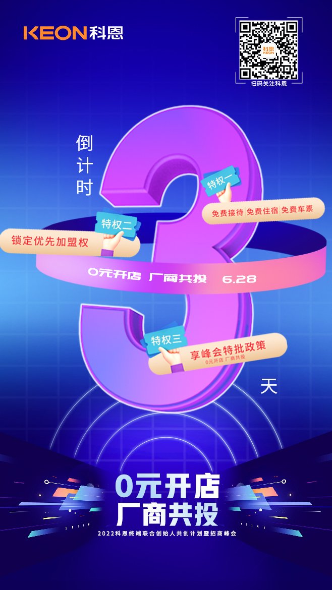 6月28日2022科恩終端聯(lián)合創(chuàng)始人共創(chuàng)計劃暨招商峰會將在廚具之都嵊州隆重舉辦,本次峰會將以“0元開店,廠商共投”為主題,邀請來自全國各地的行業(yè)精英、投資大佬匯聚一堂,共同探討廚電行業(yè)發(fā)展趨勢,解鎖集成灶行業(yè)新賽道趨勢密碼,多維驗證科恩集團軟硬厚實力,屆時,將為各位來賓解讀限時政策內(nèi)容,為各位投資人提供一個潛力無限,共創(chuàng)霸業(yè)的優(yōu)秀共創(chuàng)平臺。