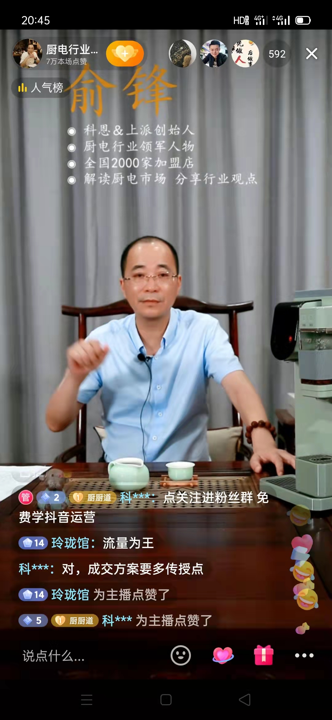 直播從19:30準(zhǔn)時(shí)開(kāi)始,俞總在大家的萬(wàn)眾期待中閃耀亮相,集團(tuán)董事、廚電大咖效應(yīng)使得眾多業(yè)內(nèi)外精英及投資創(chuàng)業(yè)者紛紛進(jìn)入直播間聆聽(tīng)取經(jīng),同時(shí),豐富的直播福利和俞總娓娓道來(lái)、由淺入深的商業(yè)思維也提升了大眾的參與度,引起了用戶對(duì)于目前經(jīng)濟(jì)形勢(shì)的廣泛關(guān)注和討論,可以說(shuō),這是一場(chǎng)具有戰(zhàn)略性、前瞻性、針對(duì)性的行業(yè)直播盛宴。