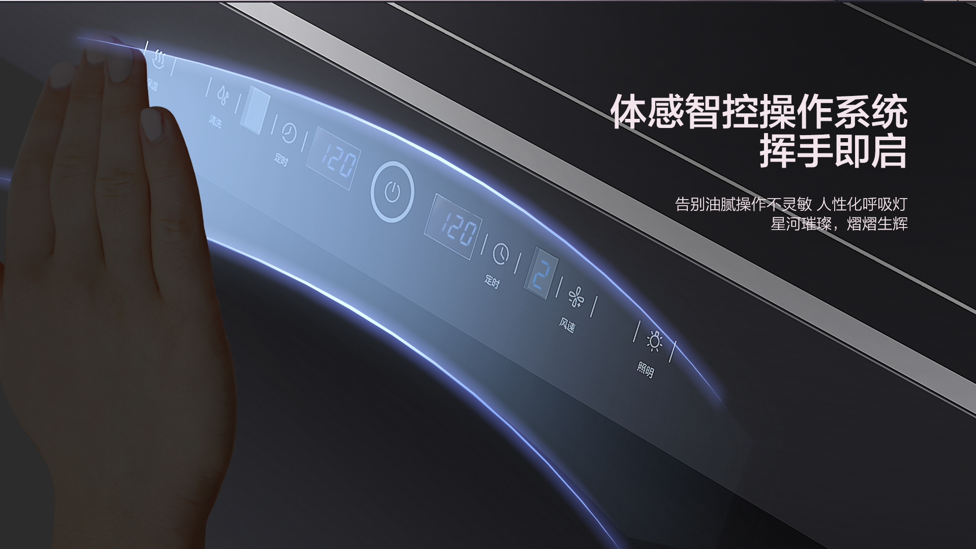 ◆體感智控操作系統(tǒng),揮手即啟,老人也可輕松使用,從此告別油膩雙手導(dǎo)致的煙機(jī)按鍵不靈敏,專(zhuān)心烹飪,再無(wú)手忙腳亂的煩惱!