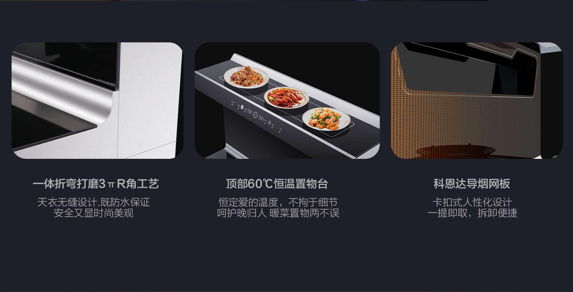 ◆60℃恒溫置物臺(tái),恒定愛(ài)的溫度,不拘于細(xì)節(jié),可暖菜亦可置物,油鹽醬醋盡數(shù)歸置,菜已熱,酒已溫,悉心呵護(hù)每一個(gè)為愛(ài)奮斗的晚歸人!