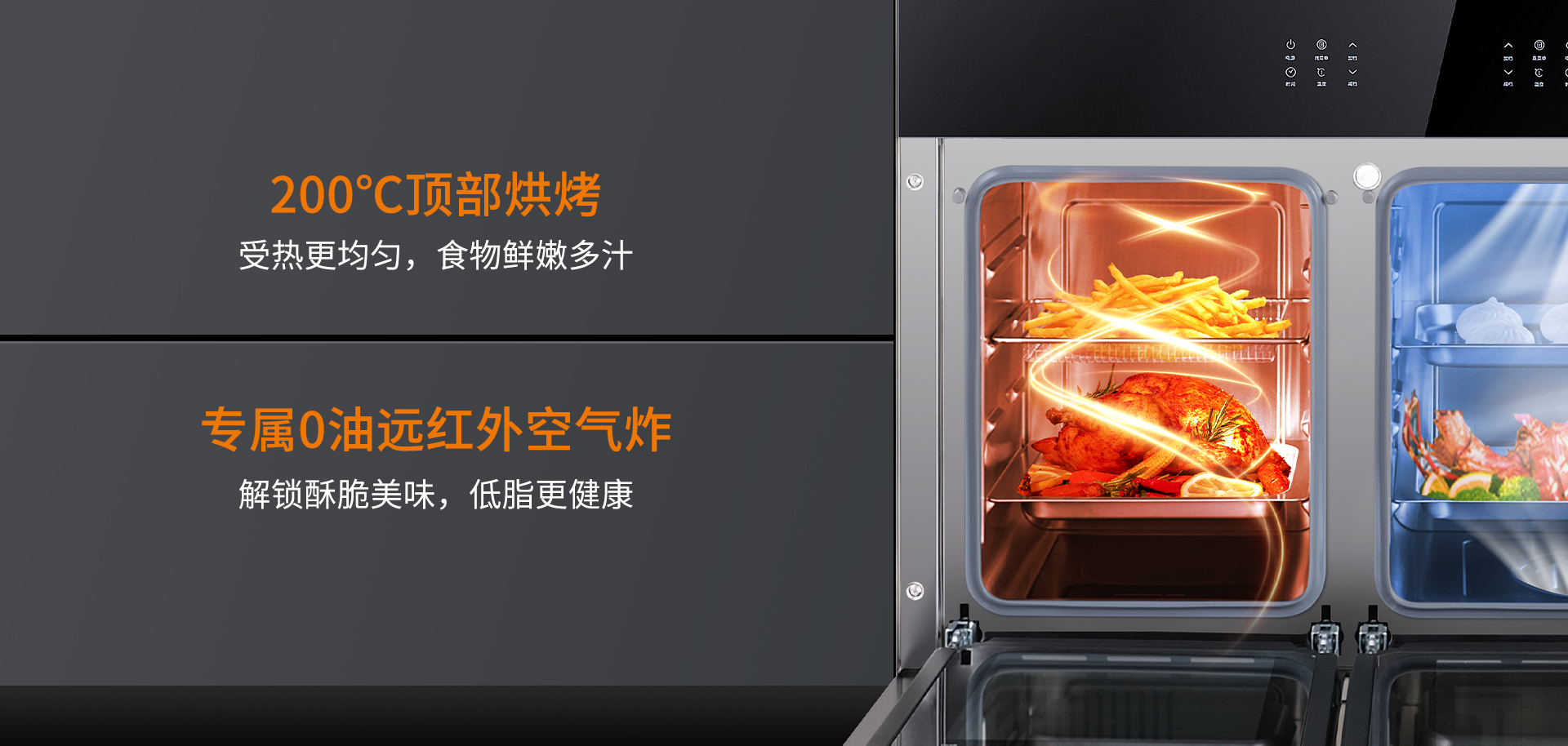 噴氣式4D立體蒸加上360°動態(tài)蒸汽內(nèi)循環(huán),讓食材方方面面、內(nèi)外都均勻受熱,還原食材真鮮美味,讓美味輕松上桌。
