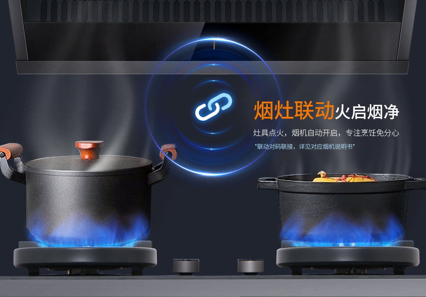 智慧聯動,悅享食光。煙灶聯動黑科技,點火瞬間油煙自動退散,170°寬域調火,從文火慢燉到烈火爆炒,68%熱效率一級能效,省氣堪比節能標兵,意外熄火保護,給廚房裝上安全氣囊。科恩KN810L:用科技守護人間煙火。
