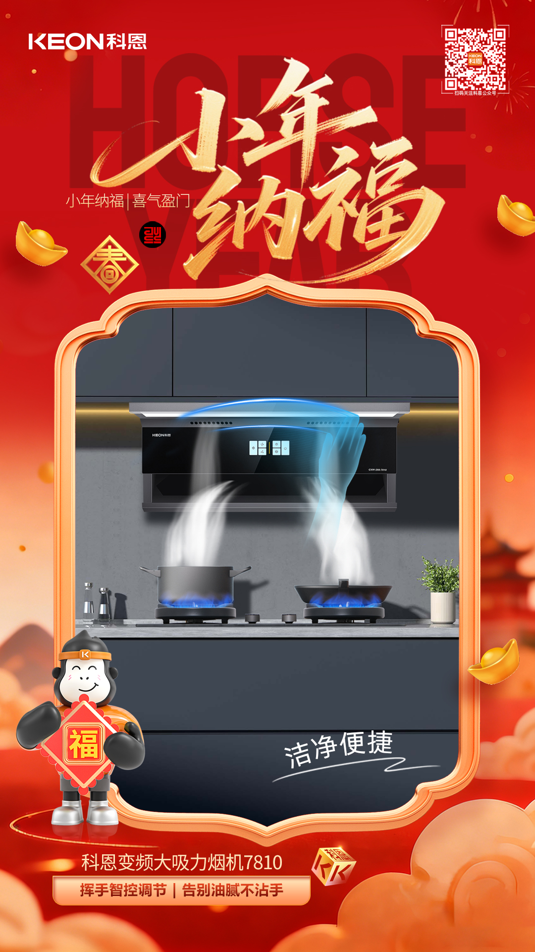 小年祭灶祈安康,科恩7810煙機以凈煙實力守護團圓之美。它讓廚房告別油煙困擾,以顏值點亮家居,用智能簡化操作,用健康貫穿始終。這個小年,讓科恩煙機陪伴你洗凈舊塵、烹煮佳肴,在清新潔凈的廚房中,迎接福氣滿盈的新春。