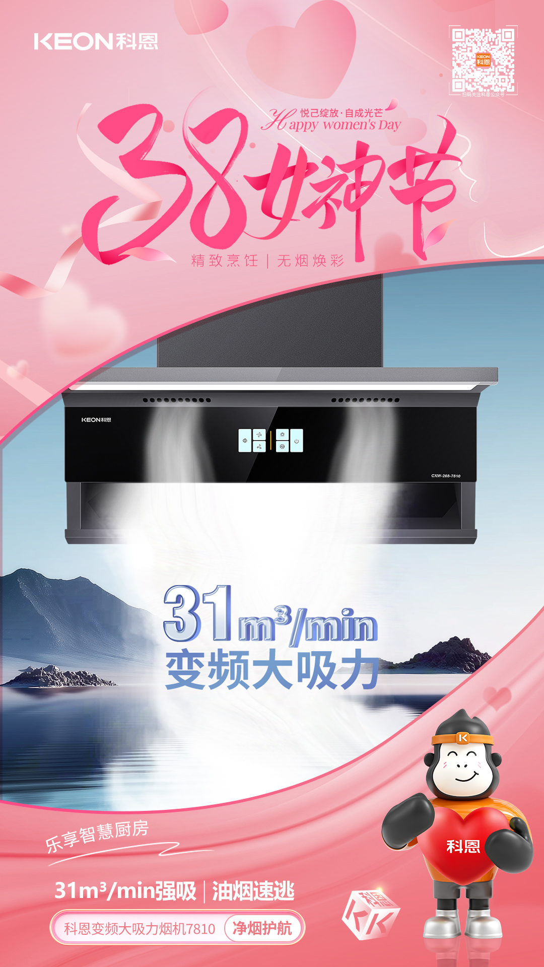 從凈煙護航到火候隨心,從恒溫守護到安全無憂,科恩以科技為翼,賦能女性品質生活。不定義她的角色,只守護她的熱愛,不辜負她的付出,只給予貼心呵護,這個婦女節,讓科恩與你一起,讓廚房成為從容主場,讓生活滿是溫柔光芒!愿每一位女性,都能在煙火氣中,活成自己喜歡的模樣,自在如風,優雅綻放。