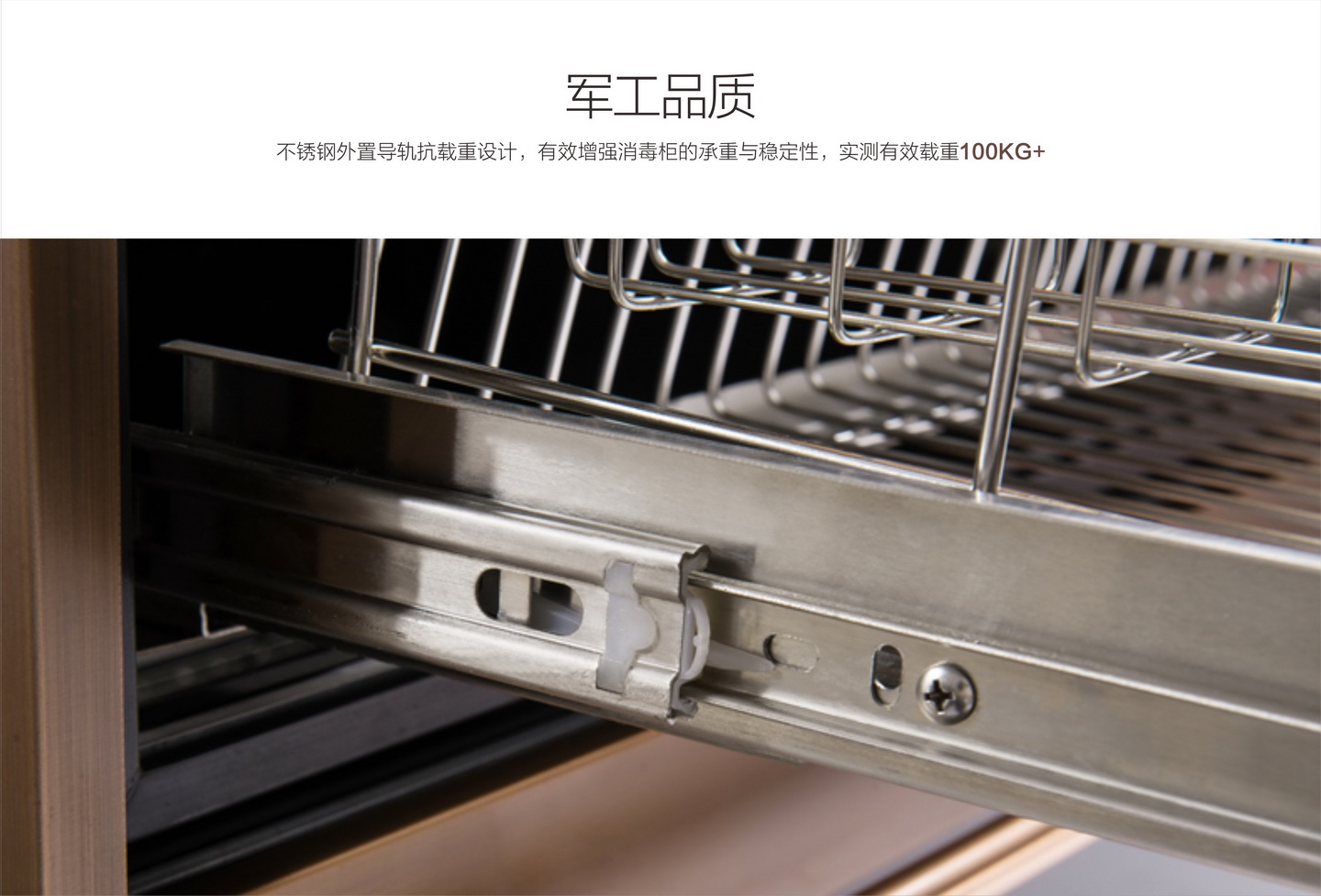 不銹鋼外置導軌抗載重設計,實測有效載重100KG+。