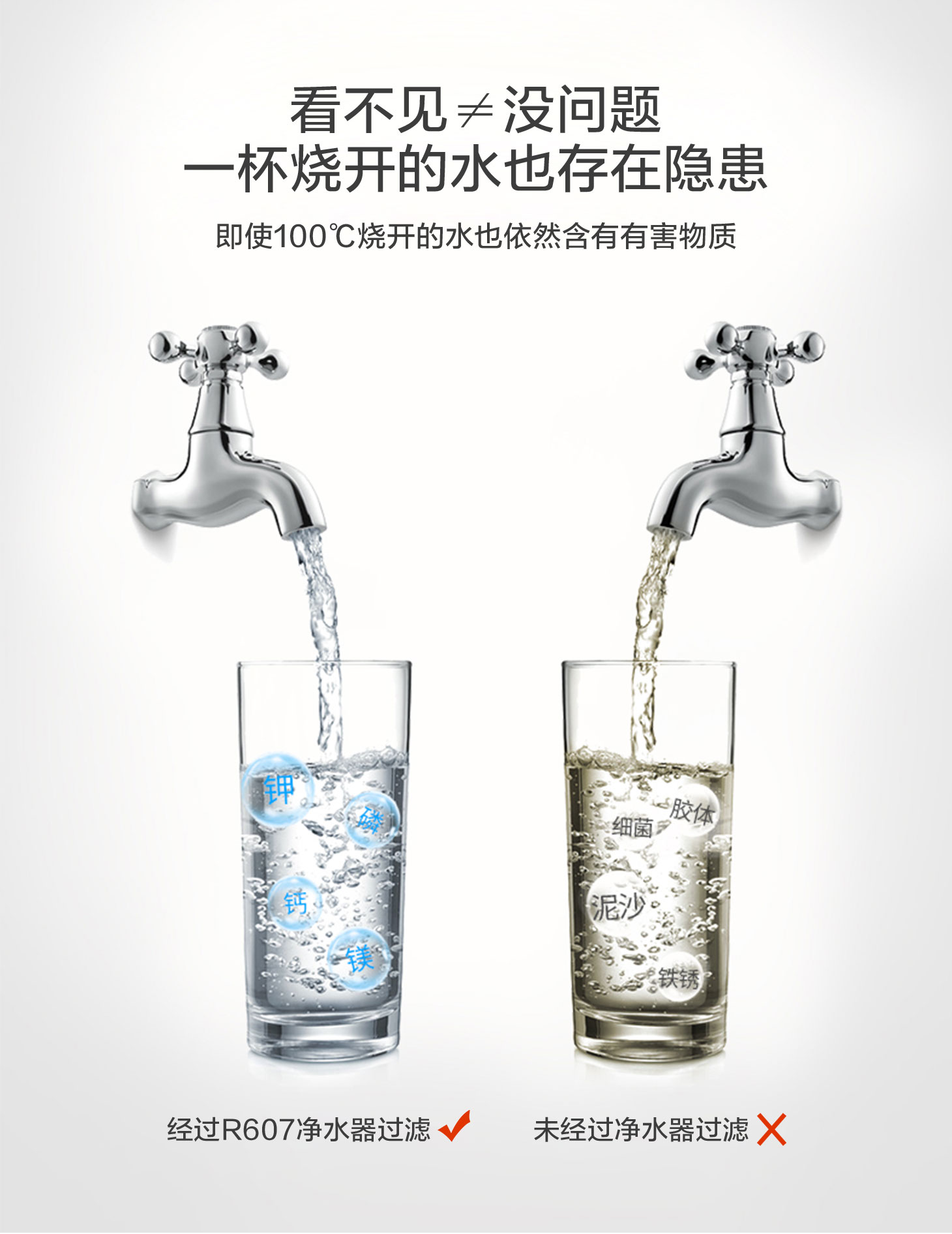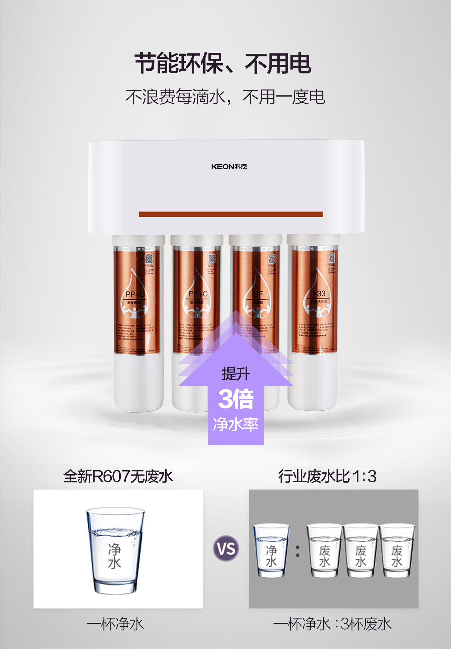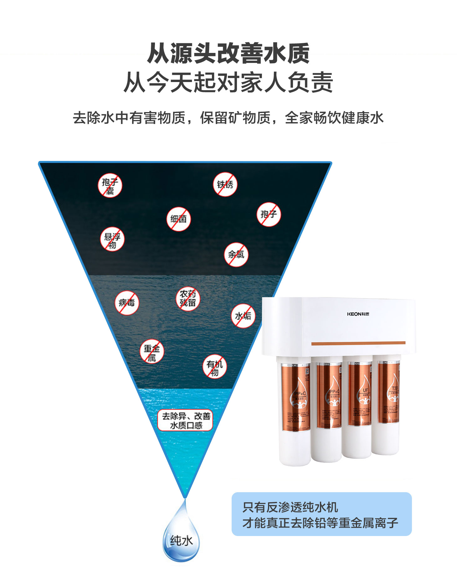 四重五級過濾,0.01微米超濾膜去除細菌和病毒。