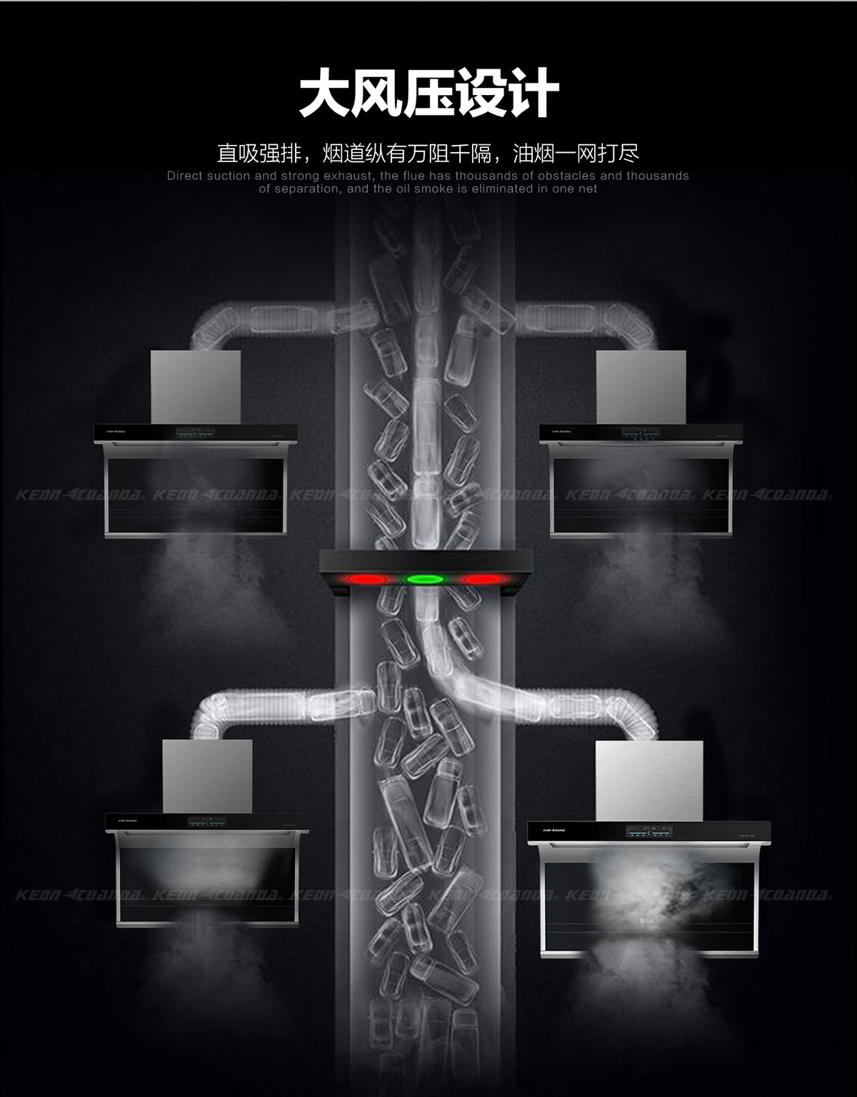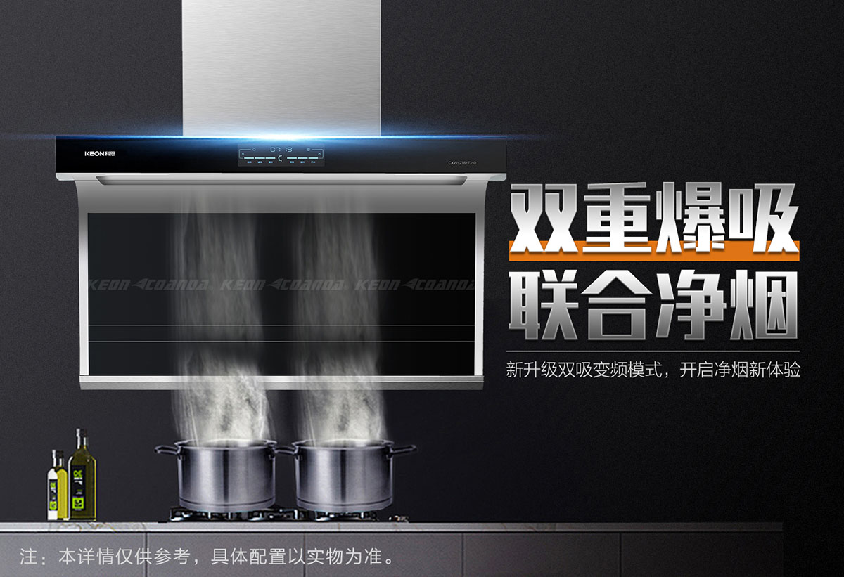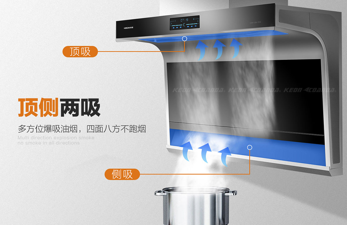 頂側兩吸,多方位爆吸油煙,四面八方不跑煙。