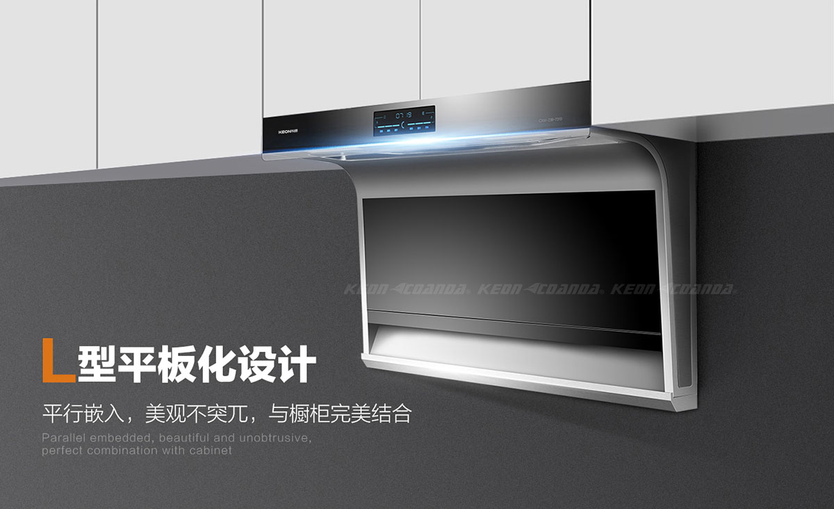 特創L型平板化隱形設計,平行嵌入,與櫥柜結合,美觀不突兀。
