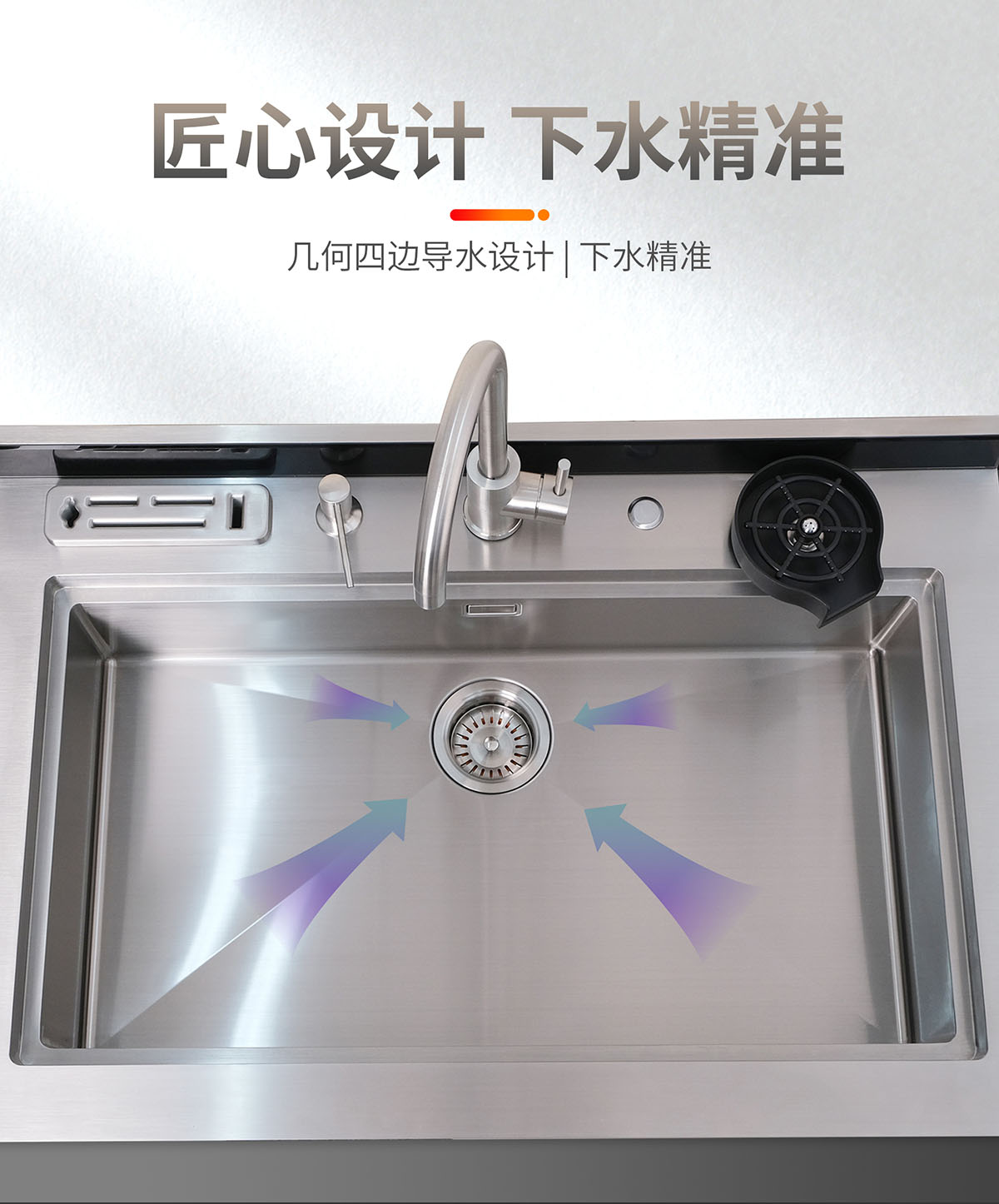 瀝水籃與砧板可靈動移動,功能分區,隨心移動