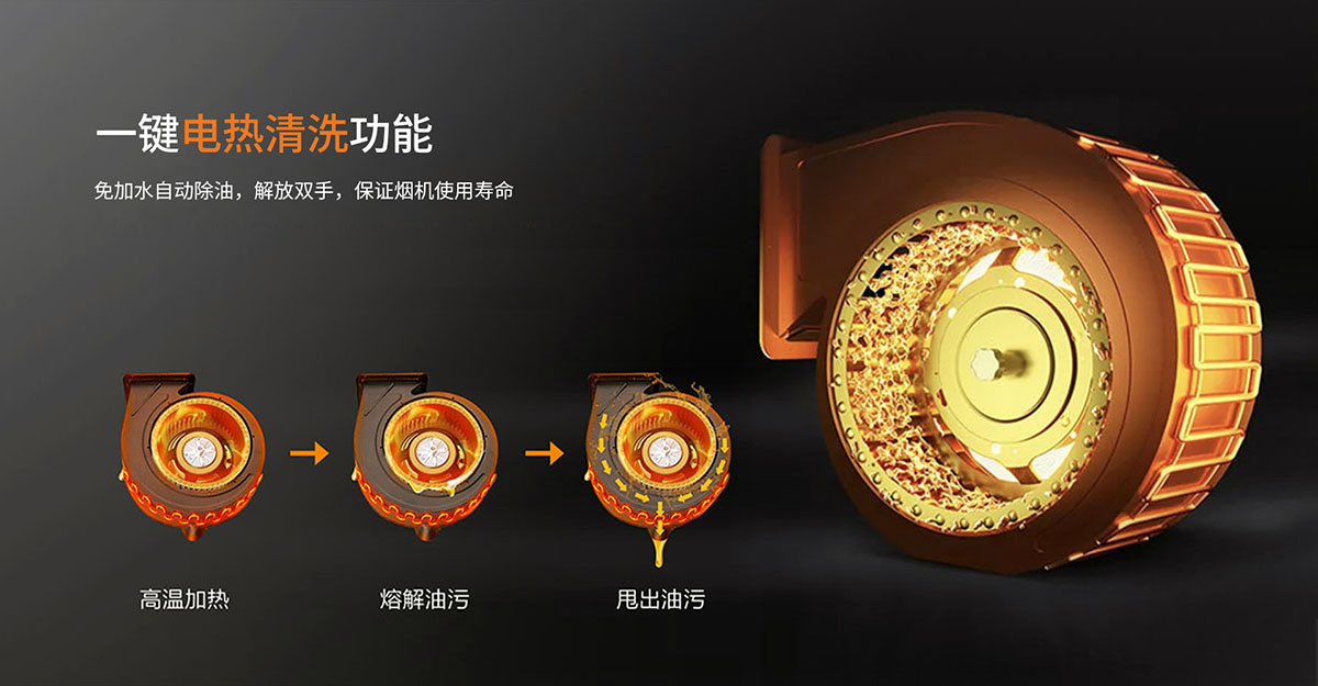 一鍵電熱清洗功能,解放雙手,保證煙機(jī)使用壽命