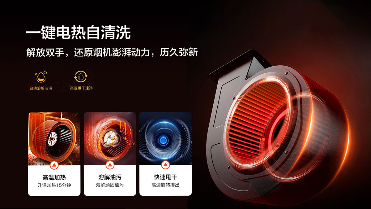 一鍵電熱自清洗,解放雙手,還原煙機(jī)澎湃動(dòng)力,歷久彌新