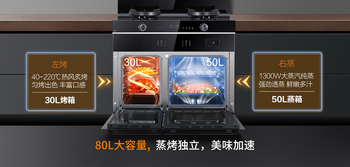 80L大容量,蒸烤獨(dú)立,美味加速