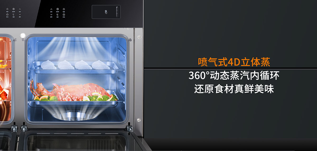噴氣式4D立體蒸,360°動(dòng)態(tài)蒸汽內(nèi)循環(huán),還原食材真鮮美味