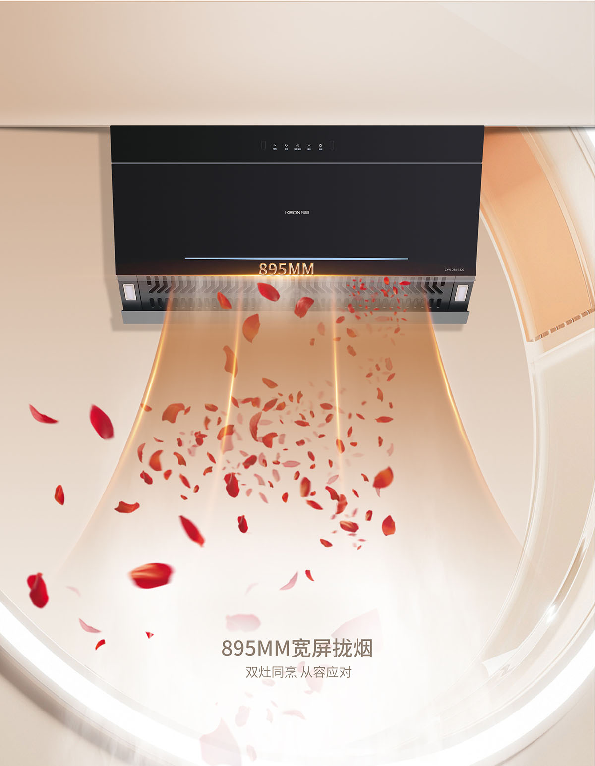 895MM寬屏攏煙,從容應(yīng)對(duì)雙灶同烹