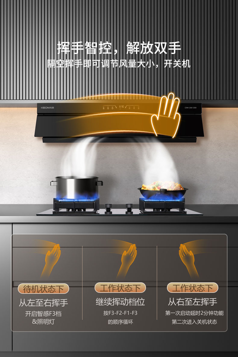 2min延時凈吸,徹底清除廚房內殘余油煙