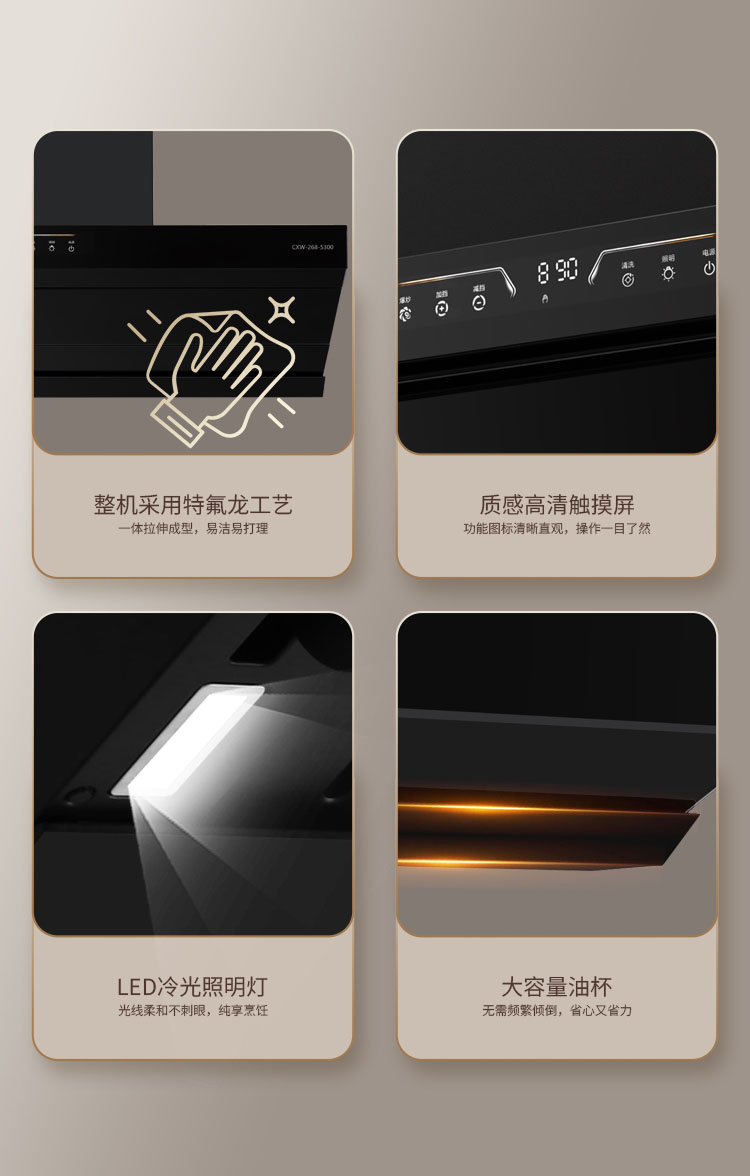 電熱自清潔,一鍵開啟電加熱,快速溶解油污
